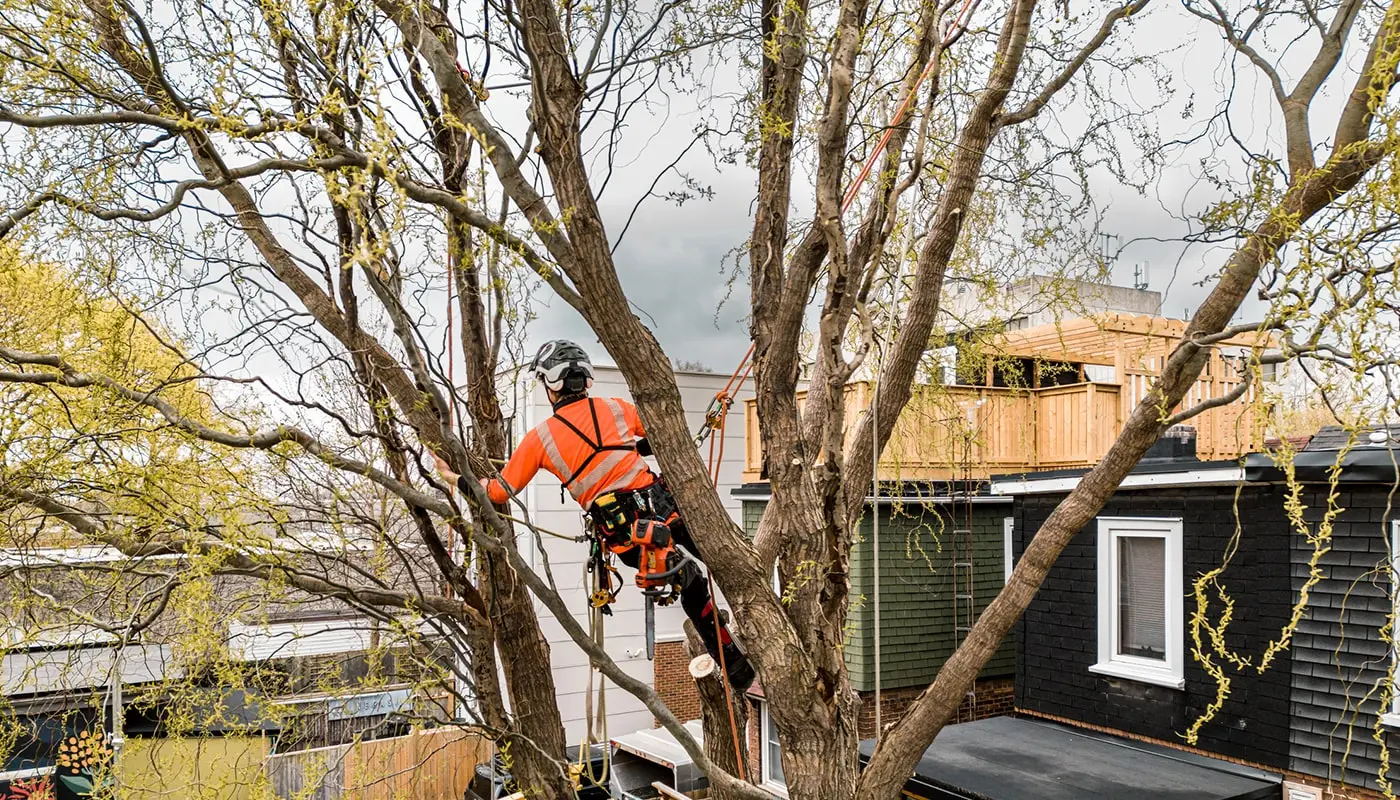 Call a certified arborist if you see damage or signs of failing health. Arborists can assess structural safety and determine whether any unnecessary pruning, or outright removal is in order to avoid potential hazards from compromised limbs or tree trunks.